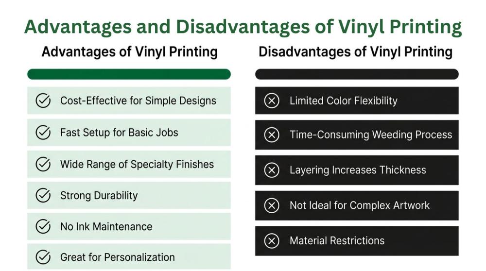 Let’s check the pros and cons of vinyl printing.