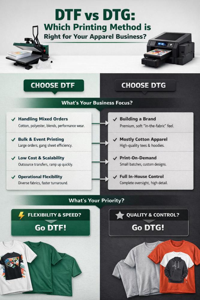 DTF vs DTG: Which One is Better for Small Apparel Businesses?